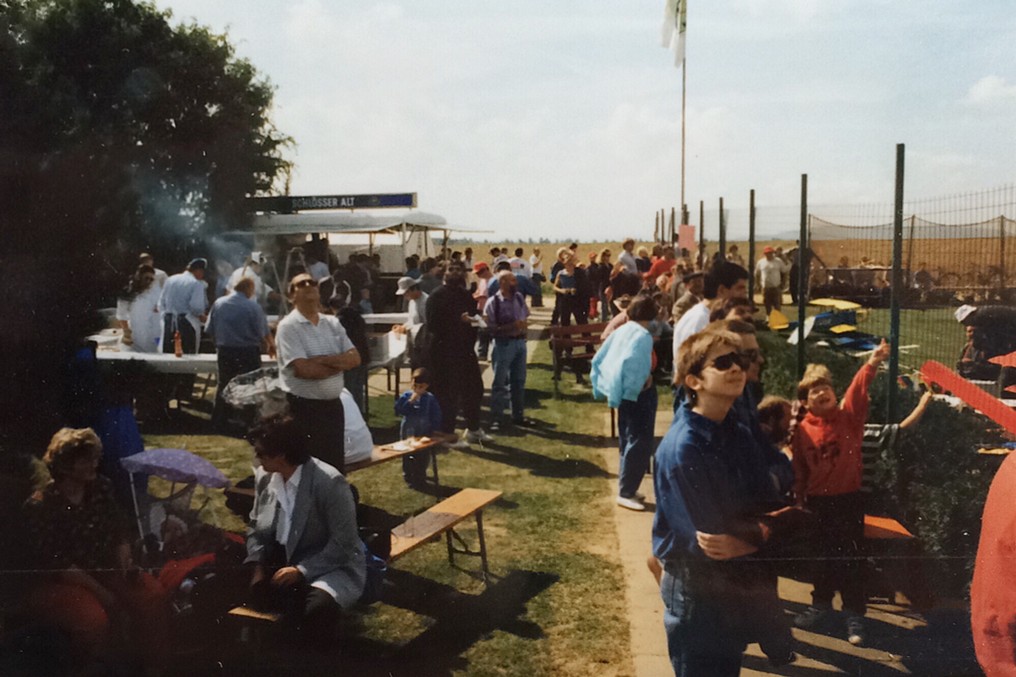 dem neuen Flugplatz auf der Kasterer Höhe. Gut 700 Zuschauer bewundern